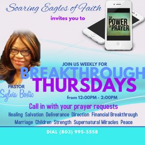 Breakthrough Prayer Line: Every Thursday 12:00pm – 2:00pm